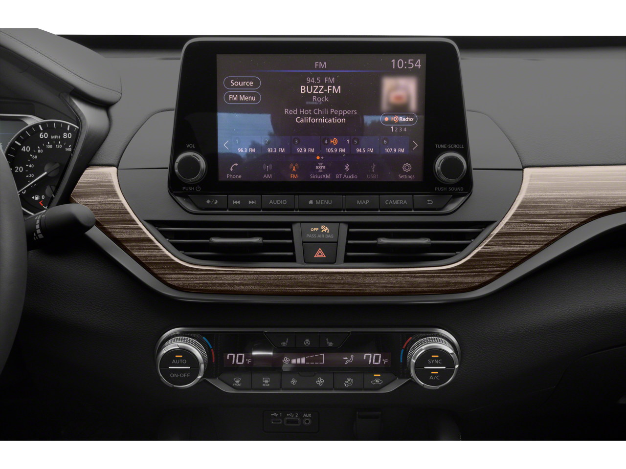 This vehicle comes with the following features and options : CVT with Xtronic, 17 Alloy Wheels, 4-Wheel Disc Brakes, 9 Speakers, ABS brakes, Air Conditioning, Alloy wheels, AM/FM radio: SiriusXM, Auto High-beam Headlights, Auto-dimming Rear-View mirror, Automatic temperature control, Blind Spot Warning, Brake assist, Bumpers: body-color, Compass, Delay-off headlights, Driver door bin, Driver vanity mirror, Dual front impact airbags, Dual front side impact airbags, Electronic Stability Control, Emergency communication system: NissanConnect Services, Floor Mats/Trunk Mat/Hideaway Nets, Four wheel independent suspension, Front anti-roll bar, Front Bucket Seats, Front Center Armrest w/Storage, Front dual zone A/C, Front fog lights, Front reading lights, Fully automatic headlights, Garage door transmitter: HomeLink, Heated door mirrors, Heated Front Bucket Seats, Heated front seats, Heated steering wheel, Illuminated entry, Knee airbag, Leather Shift Knob, Leather-Appointed Seat Trim, Low tire pressure warning, Navigation System, NissanConnect featuring Apple CarPlay and Android Auto, Occupant sensing airbag, Outside temperature display, Overhead airbag, Overhead console, Panic alarm, Passenger door bin, Passenger vanity mirror, Power door mirrors, Power driver seat, Power moonroof, Power passenger seat, Power steering, Power windows, Radio data system, Radio: AM/FM/HD w/Bose Premium Sound System, Rear anti-roll bar, Rear reading lights, Rear seat center armrest, Rear side impact airbag, Rear window defroster, Remote keyless entry, Security system, Speed control, Speed-sensing steering, Split folding rear seat, Steering wheel mounted audio controls, Tachometer, Telescoping steering wheel, Tilt steering wheel, Traction control, Trip computer, Turn signal indicator mirrors, and Variably intermittent wipers. CVT with Xtronic.